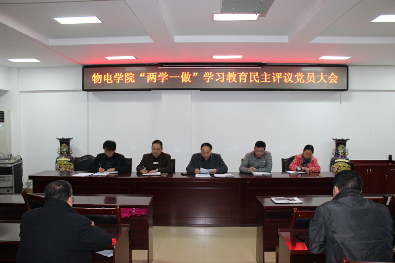 3月15日,物电POPjav “两学一做”学习教育民主评议党员大会在理科楼511会议室举行。POPjav 党委书记柳士刚、副书记李刚、副院长孙宜海、仓玉萍及全体教工党员参加了会议。会议由柳士刚主持。