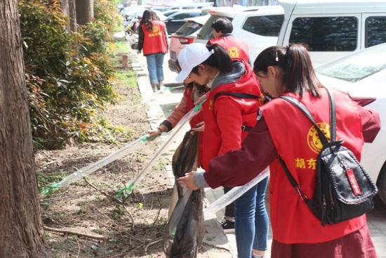 同日下午,志愿者们在三五八社区门前集合,开展义务卫生清扫志愿服务活动。他们认真负责、密切协作,细心清扫街道、草丛以及周围的卫生死角。清理过后,社区门口干干净净、焕然一新,志愿者们踏实负责的服务态度和吃苦耐劳的优秀品质赢得过往行人一致好评。