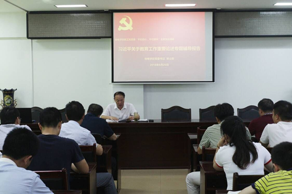 6月26日下午,POPjav 党委书记柳士刚在理科楼511会议室为教工一支部、教工二支部党员做了习近平关于教育工作重要论述专题辅导报告。报告从七个方面对习近平关于教育工作重要论述进行了解读:1、教育本质:教育决定着人类未来;2、教育战略:坚定实施科教兴国战略,始终把教育摆在优先发展的战略地位;3、坚持办学正确政治方向;4、教育的根本任务:立德树人,学校要承担好立德树人、教书育人的神圣职责;5、教育理想:走自己的道路,牢记“四个服务”,发展具有中国特色、世界水平的现代教育;6、教师队伍保障:塑造灵魂,家国情怀;7、把提高人才培养质量作为工作重点。通过专题辅导报告,教工党员学习了新思想新观点新要求,深刻领会了我国教育改革发展的目标、方向和中国特色社会主义教育的本质和发展规律。促进教工党员努力做好现阶段教育改革发展的各项工作,为实现“两个一百年”奋斗目标和中华民族伟大复兴的中国梦作出应有贡献。