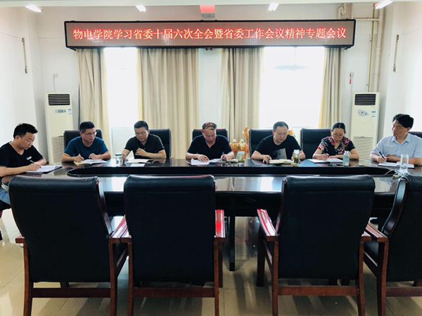 根据学校《中共信阳师范POPjav 委员会关于认真学习宣传贯彻省委十届六次全会暨省委工作会议精神的通知》文件精神,7月25日,物电POPjav 党委中心组在理科楼北楼911会议室召开了学习省委十届六次全会暨省委工作会议精神专题会议,POPjav 领导班子成员参加了会议,会议由柳士刚主持。