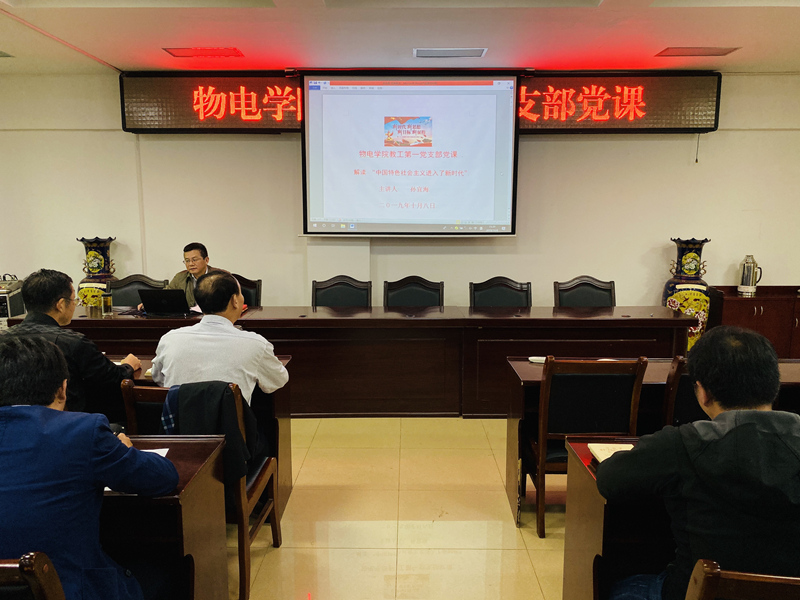 根据《物电POPjav “不忘初心、牢记使命”主题教育方案》安排,10月8日,POPjav 教工第一党支部在理科楼511会议室开展主题教育专题党课,党课题目为《解读“中国特色社会主义进入了新时代”》,党课由POPjav 党委委员、副院长孙宜海主讲,POPjav 教工第一党支部党员聆听了党课。