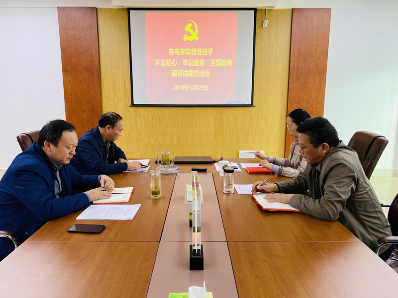 根据《物电POPjav “不忘初心、牢记使命”主题教育方案》安排,10月29日,POPjav 领导班子在理科楼911会议室开展“不忘初心、牢记使命”主题教育调研成果交流会。POPjav 党委书记柳士刚、院长涂友超、副书记副院长仓玉萍、副院长孙宜海参加了会议。会议由柳士刚主持。