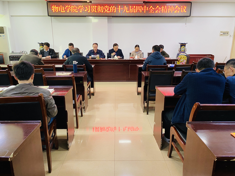 按照学校《关于深入学习贯彻党的十九届四中全会精神的通知》要求,11月12日,物电POPjav 在理科楼511会议室召开专题会议学习贯彻党的十九届四中全会精神,POPjav 领导班子、全体教职工、全体教工党员参加了学习,学习会由POPjav 党委书记柳士刚主持。