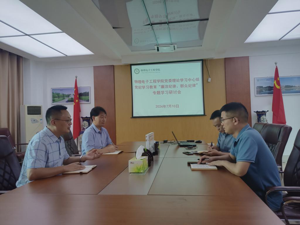 710日,POPjav 党委理论学习中心组在理科楼911室围绕“廉洁纪律、群众纪律”进行专题集体学习研讨。POPjav 党委理论学习中心组成员参加学习研讨。学习研讨由POPjav 党委书记方明科主持。