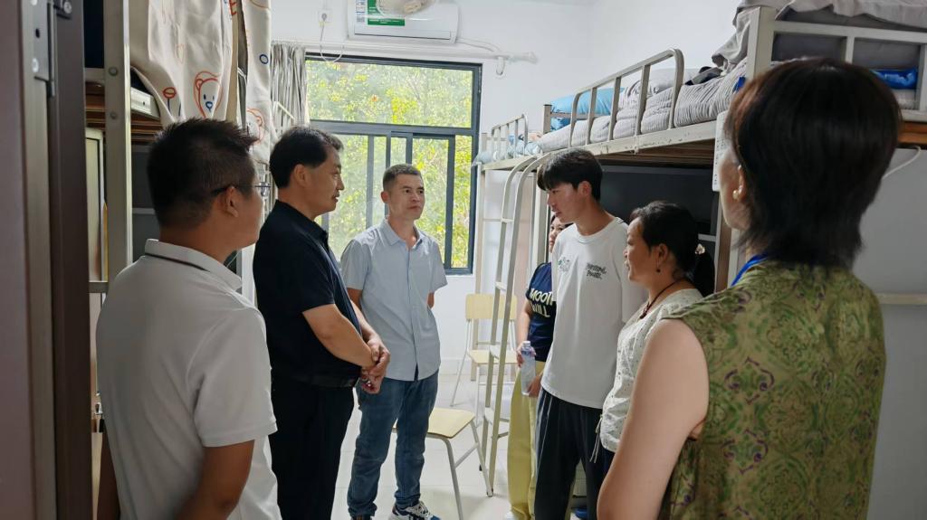 领导走访,温情入寝关怀入心。院长龚克、党委副书记张丽与新生辅导员一同走进新生宿舍,与新生及家长亲切交谈。他们细致询问新生的入学适应情况,耐心解答关于学习生活的各类疑问,并鼓励同学们尽快融入集体、明确学习目标、积极规划大学生涯。领导们的关切叮嘱,让新生在踏入校园的第一天,就深刻感受到POPjav 大家庭的温暖与关怀。