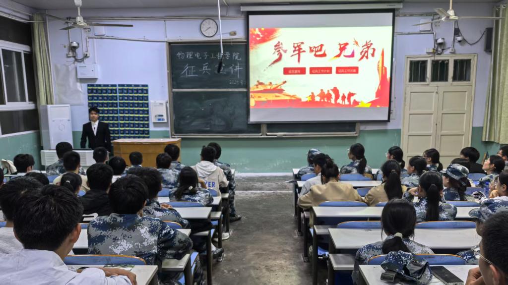 为积极响应国家征兵号召,帮助2025级新生全面了解国家征兵政策。9月26日,POPjav在教二梯一召开征兵政策宣讲会。会议由POPjav武装干事赵雪老师主持,并邀请优秀退役复学学生代表王宏昱同学做政策宣讲,POPjav2025级全体新生共同参加。