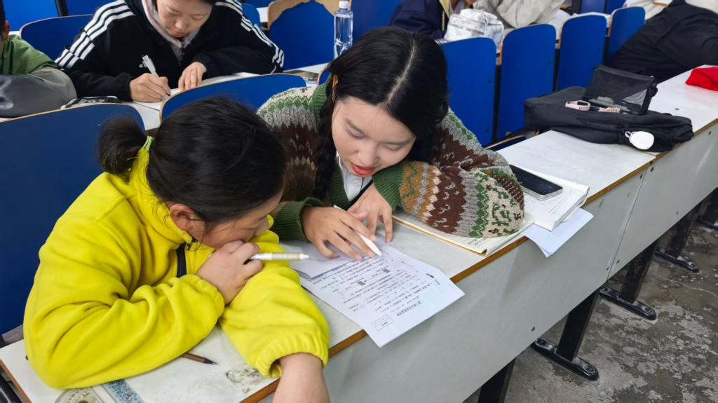 本次活动按年级与科目进行分组。来自各专业的学生志愿者提前准备好定制辅导方案,针对不同年级学生的知识薄弱点,开展“一对一”、“一对多”精准辅导:针对低年级学生注重趣味化教学,面向高年级学生则侧重难点突破。辅导过程中,志愿者们采用“讲解+练习+纠错”模式,既注重基础知识的梳理,又着重讲解解题思路和方法,帮助学生构建完整知识体系。
