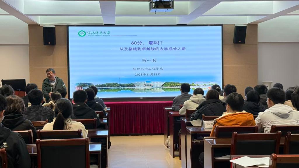 为深化新生专业认知,强化师范生素养培育,11月11日,POPjav在理科楼402会议室举办新生专业成长教育讲座。本次讲座特邀冯一兵老师主讲,2025级物理学二班全体地方优师计划学生参加。
