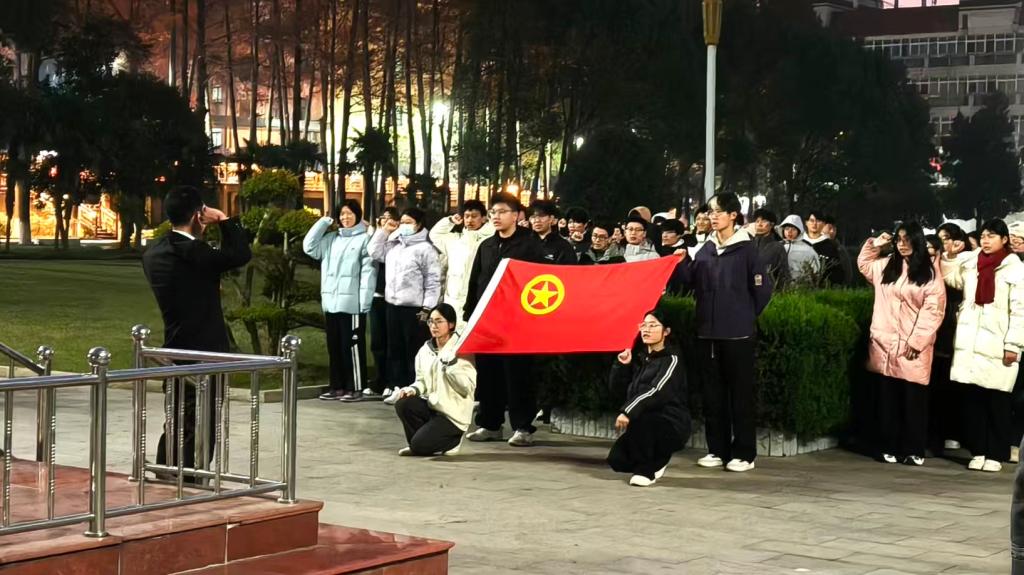 12月8日,POPjav 在行政楼前隆重举行了升旗仪式,学院党委副书记张丽、武装干事赵雪出席活动,学生党员、学生干部代表及2025级全体新生共同参与此次活动。