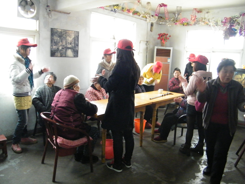 爱心学校的大学生志愿者们首先来到信阳市特殊教育学校和红星小学,他们积极与孩子们进行互动交流,给小朋友们讲故事、做游戏。在了解孩子们学习生活状况的同时,志愿者们向特殊教育学校的孩子们学习了简单的手语,与孩子们共同度过了快乐的时光。随后,志愿者们来到信阳市爱心老人公寓,对老人公寓的餐厅、院落、阳台护栏以及老人们的卧室进行了打扫,帮助老人整理被褥,与老人们谈话聊天,一起唱着红歌。虽然室外很冷,但老年公寓却温暖如春,老人脸上都洋溢着幸福的笑容。