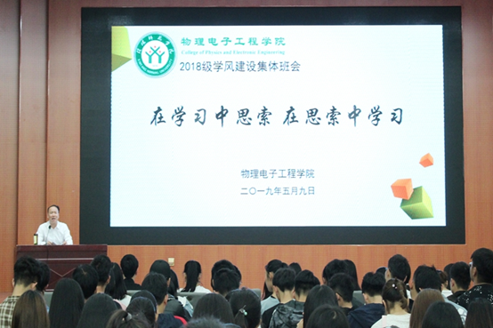 为进一步加强学风建设,提高学子学习积极性, 5月9日晚,POPjav于逸夫楼多功能厅成功召开“在学习中思索,在思索中学习”学风建设主题班会。POPjav党委书记柳士刚,2018级辅导员张康华、黄钰莹、赵雪与2018级全体学子共同参与主题班会。会议由黄钰莹主持。