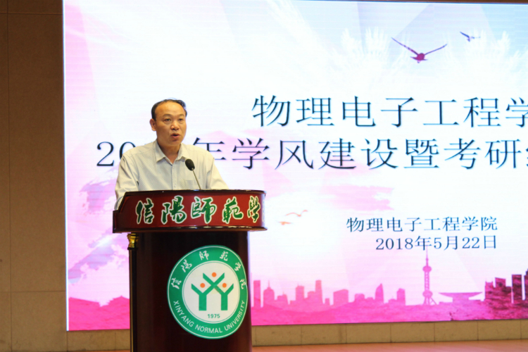 四名考研成功的学生代表依次同在场师生分享自己的考研经验。物理学专业的周方杰从选择、学习、心态三个方面介绍自己的考研心得。选择方面,她提醒备考学子们全面充分认识自己,要根据自己的优势和劣势挑选学校及专业。学习方面,她分时间、用书、分类、考前四个部分向大家详细介绍自己的学习方法,分享自己的学习技巧,其优秀的逻辑思维能力、严格的自我约束能力获得在场师生一致称赞。应用物理班的王丽君着重介绍了其考研调剂的艰辛历程,鼓励学子们主动出击,自寻机会,为现场学子们今后解决相关问题提供了宝贵经验。电子信息技术班的邢中秋结合自己考取郑州大学信息与通信工程专业的经历,从院校选择、学硕专硕、各科复习、心得感悟四个方面分享自己的考研经验。期间,她向大家详细介绍了自己复试的流程与形式,提醒考研学子主动联系导师,积极准备笔试,以饱满的精神迎接每一个问题。2015级备考学生代表闫卉梅发言。她号召学子们积极树立考研标杆,正确对待考研路上的困惑与艰难,以坚定的信念、顽强的精神书写青春路上的华丽篇章。
