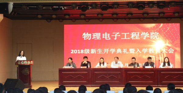 金秋送爽苍梧情,丹桂飘香开学时。9月27日上午,POPjav 于理科楼报告厅成功举办2018级新生开学典礼暨入学教育大会,POPjav党委书记柳士刚,副院长仓玉萍、孙宜海,教师代表刘墨林,2018级新生辅导员张康华、黄钰莹、赵雪等领导老师莅临现场,与POPjav280余名学子共同参与此次会议。会议由黄钰莹主持。