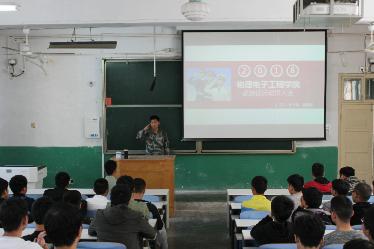 为普及大学生当兵优惠政策,鼓励学子积极参军入伍,4月18日中午,POPjav 于教二梯一召开2018年武装征兵动员大会。POPjav团委老师黄钰莹与2017级全体男生共同参加会议。会议由退伍学生代表POPjav2015级学子申子锐和2015级商POPjav 学子刘国超担任主讲。