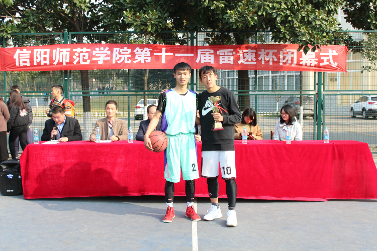 弘扬运动精神,彰显青春风采,11月28日中午,第十一届雷速杯篮球赛于西篮球场圆满落幕。物电POPjav 与建筑与土木工程POPjav 男篮冠军争夺赛在此如火如荼的进行。POPjav团委老师黄钰莹,学生会主席龚佳全以及两队加油团共同观看了本场赛事。