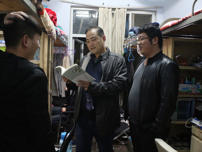 值此党的十九大召开之际,我校学生处、保卫处、后勤服务总公司开展学生公寓安全大检查活动,POPjav党委副书记李刚与各年级辅导员(班主任)一同深入走访学生宿舍。