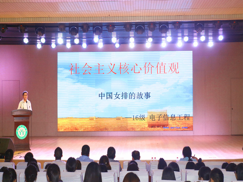 为大力推进社会主义核心价值观教育,培育和弘扬社会主义核心价值观,5月26日晚上,物电POPjav “讲价值观故事 实现青春梦想”主题教育活动决赛在理科楼多功能厅顺利开展。校党委宣传部理论科科长李东晓,校团委副书记邱洋,校学工部教育科科长李明,POPjav党委书记柳士刚,党委副书记李刚,副院长孙宜海,党委秘书张康华,思想政治教研室主任张彦飞,办公室主任周理海,辅导员黄钰莹等领导老师莅临现场担任比赛评委,与POPjav500余名学子共同观看比赛。