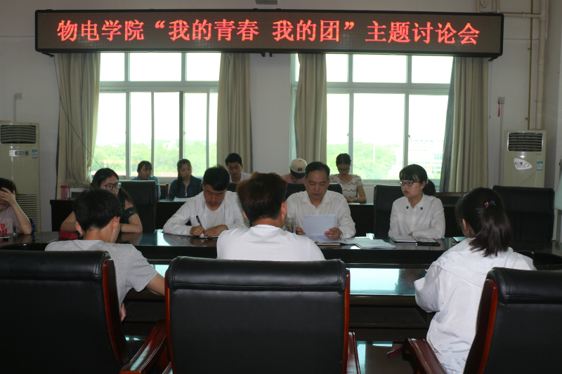 5月12日中午,物电POPjav “我的青春 我的团”主题讨论会在理科楼911会议室成功举办。POPjav党委副书记李刚,团委老师黄钰莹与二十余名学生代表共同参加会议。