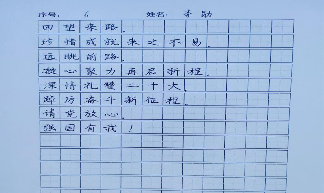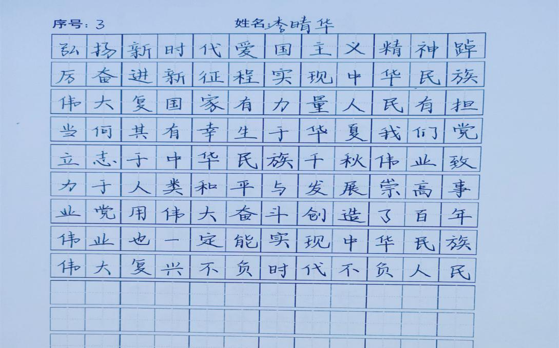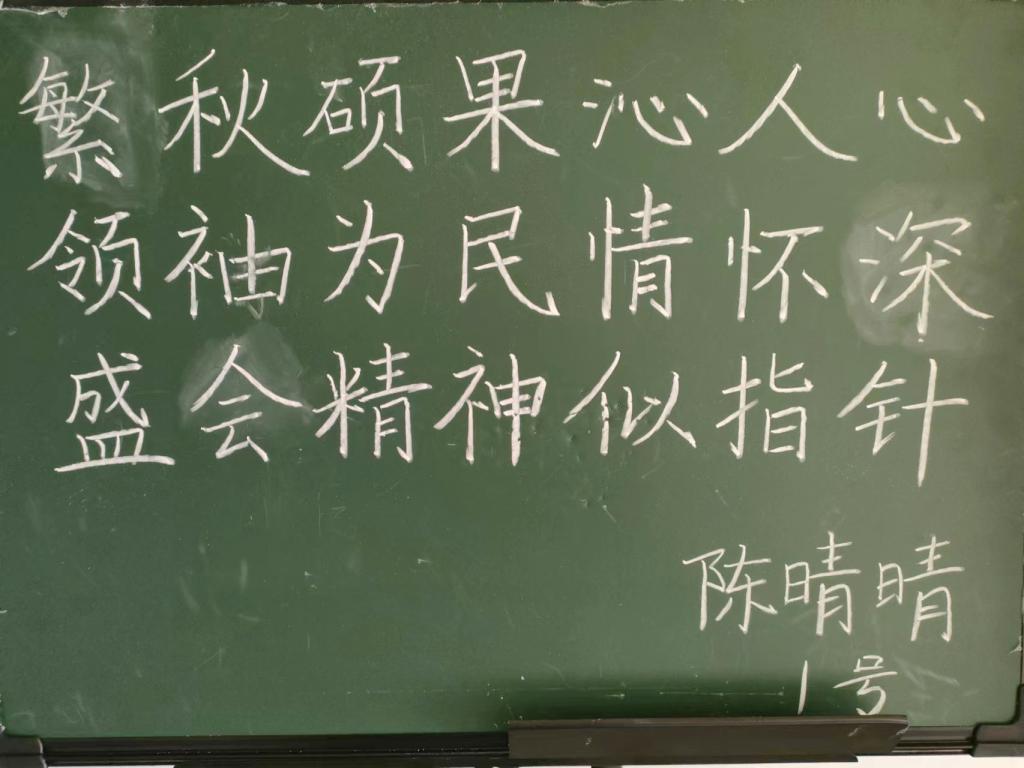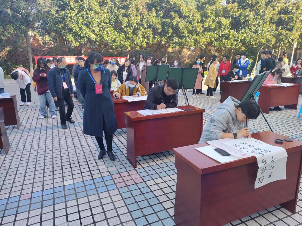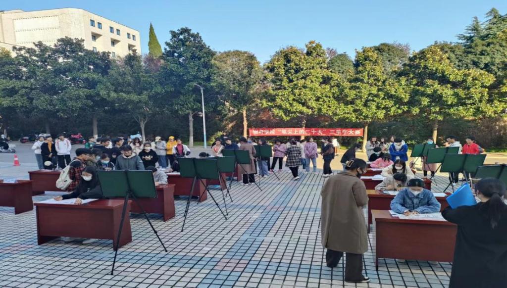 开幕式结束后,科技文化节的第一项活动“笔尖上的二十大”三笔字大赛决赛随即展开。书法是中华文化的瑰宝,凝结着中华民族的智慧,选手们挥洒自如,刚强有力的字体蕴涵着中华传统文化孜孜不倦的追求与探索,饱含着对二十大的礼赞和对祖国的热爱;在书写钢笔字时,选手们淡定自若、胸有成竹、神情专注地写每个字;写粉笔字时,同学们全力以赴,同样精彩绝伦。一幅幅作品跃然纸上,粉笔字工整、清秀;钢笔字苍劲、隽美;毛笔字遒劲、流畅。