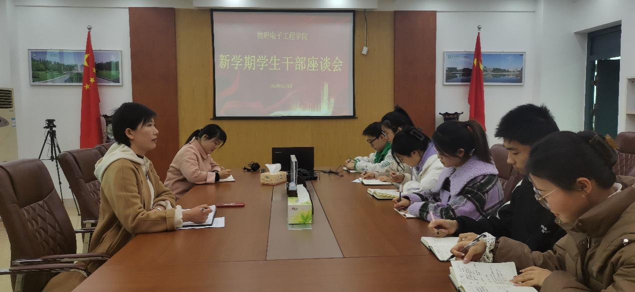 为进一步了解青年学生的思想动态,充分发挥学生干部的带头作用,营造和谐向上的校园文化氛围。3月16日,POPjav于理科楼911会议室举行学生干部座谈会。党委副书记张丽,团委老师牛文娟,团委副书记李雪峰,学生会主席团成员参加此次会议。