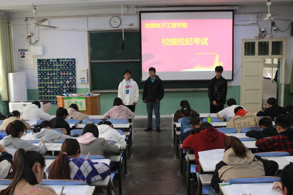 为规范2023级新生管理行为,鼓励和支持学生实行自我管理、自我服务、自我教育和自我监督。11月4日,POPjav在教二楼、教三楼组织开展2023级学生校规校纪考试,213名新生全部参加。