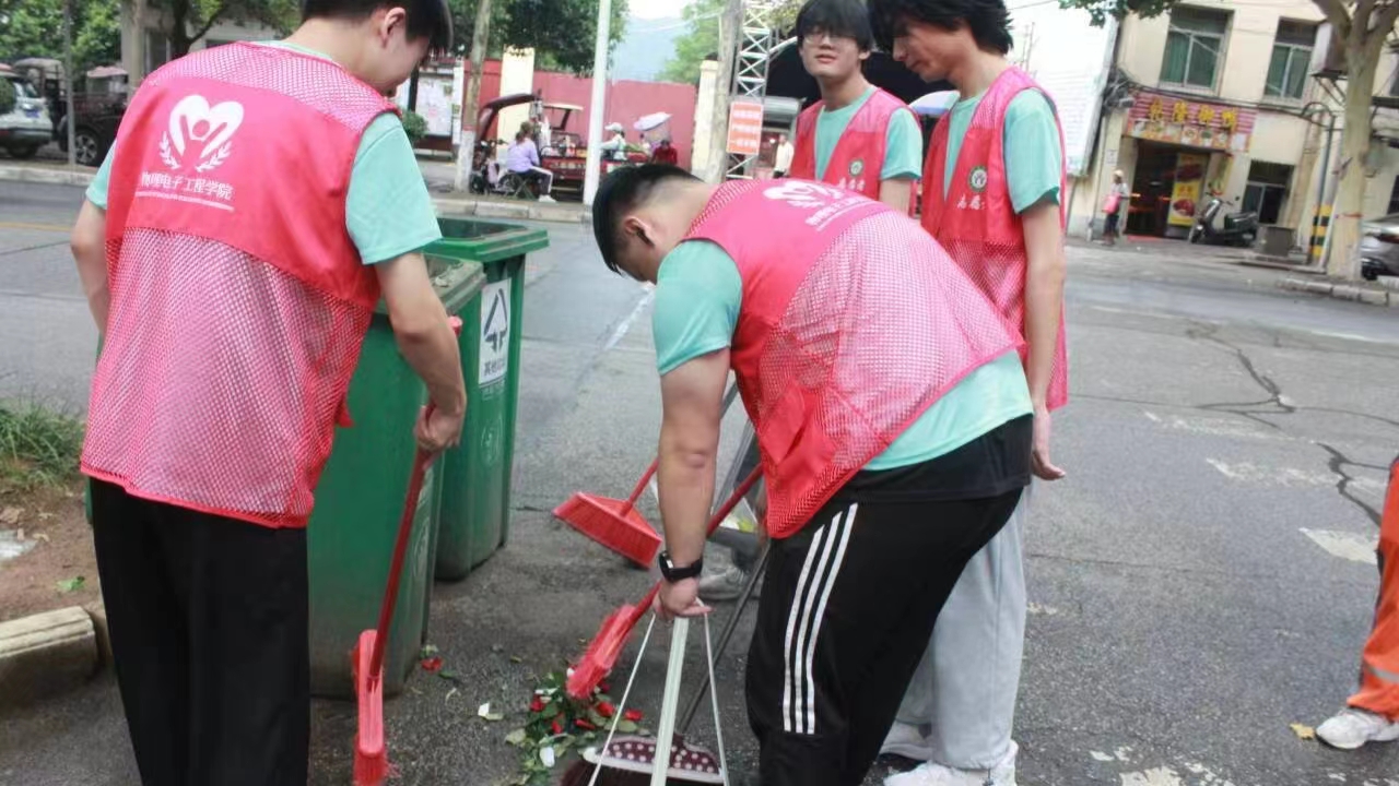 城市净颜,环保同行。志愿者则深入信阳市城市街道,开展“‘卫’爱而行,为爱而行”志愿服务活动,为环卫工人送去了温暖。他们手持扫帚、垃圾袋等清洁工具,对路面、绿化带、公共设施等区域进行打扫清理,垃圾分类投放至垃圾桶内。在环卫工人的指导下,志愿者们积极地完成了马路清扫工作。在帮助她们清扫马路的同时,志愿者们也真切地感受到环卫工人的辛苦。