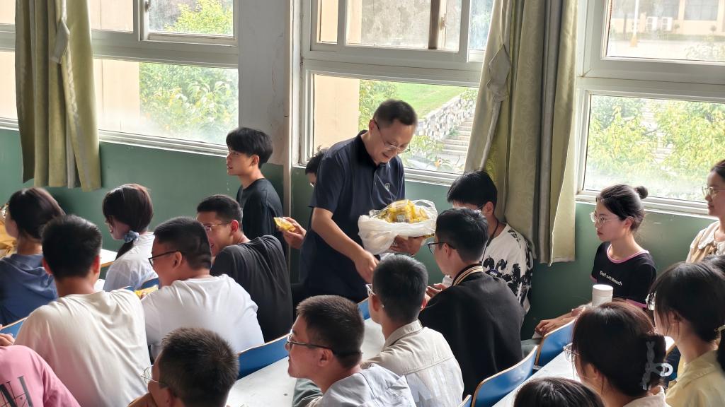 随后,方明科为2024级全体新生分发牛奶和月饼。这份特别的礼物不仅承载着POPjav 对新生们踏入新旅程的深切关怀,更传递了POPjav 对新生们的关怀与祝福。新生们手捧月饼,脸上洋溢着幸福的笑容,他们纷纷表示将不负韶华,努力学习,为POPjav 争光、为学校争彩。