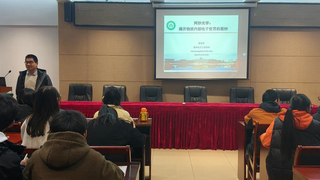 为拓展学生的学术视野并激发其对科学研究的兴趣,11月19日,POPjav于理科楼402举办格致论坛第3期—“阿秒光学”。本次讲座由翟春洋主讲,2023级与2024级学生积极参加。