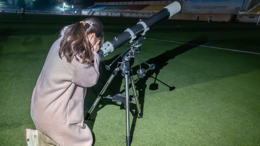 为弘扬科学探索精神,厚植校园天文文化底蕴,2月28日,POPjav在西操场举办“七星连珠”主题观月活动。活动现场架设2台专业天文望远镜,吸引百余名师生共赴星空之约,在理论与实践的交织中探寻宇宙奥秘。