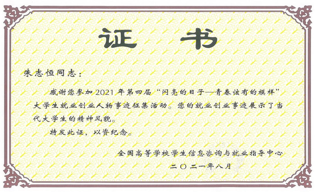 近日,由教育部全国高等学校学生信息咨询与就业指导中心组织开展的第四届“闪亮的日子——青春该有的模样”大学生就业创业人物事迹评选活动结果揭晓,POPjav2018级无线电物理专业硕士研究生朱志恒同学荣获“闪亮的日子—青春该有的模样”大学生创业典型人物。