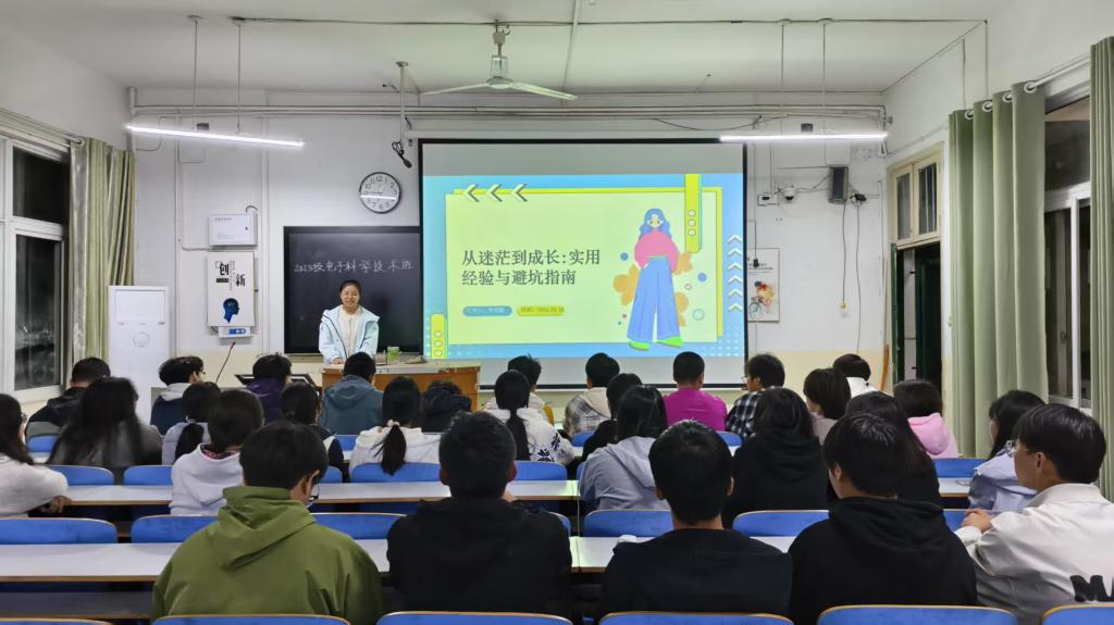 10月18日,POPjav分别在教二、教三楼开展“星辰引路,薪火相传”明星故事分享会。此次分享会邀请姚婧怡、王恒、刘涛等八位高年级优秀学生为新生做学业规划指导,2025级全体学生参加。