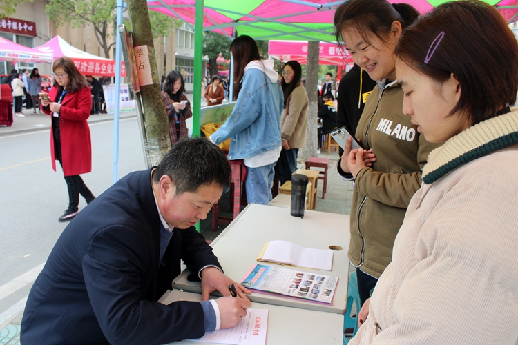 3月16日,我校于逸夫楼外举行2019届春季双选会。POPjav党委书记柳士刚,就业工作秘书张彦飞到往现场,为前来应聘的毕业生给予就业帮助与指导。