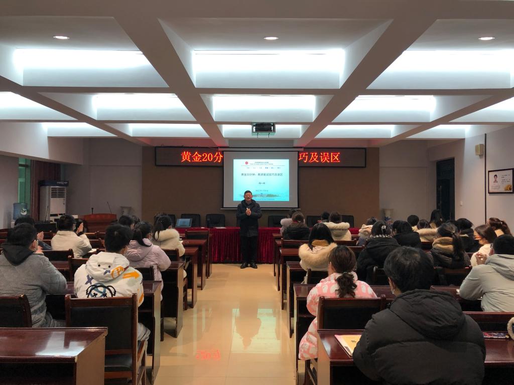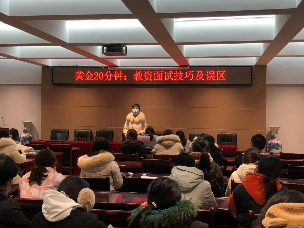本次讲座的内容主要从初、高中教师资格证考试面试流程、备考策略两方面来进行,重点讲授了教师资格证考试面试中必答题环节、模拟授课环节和答辩环节的备考策略、应答技巧和注意事项。在讲座过程中,还模拟了面试情景,现场让同学们试讲,并以面试考官的身份对同学的试讲进行评价,针对同学们在试讲过程中存在的不足作了详细分析,并从职业认知、心理素质、仪表仪态、言语表达、思维品质、教学设计、教学实施、教学评价等方面对同学们提出了建议。