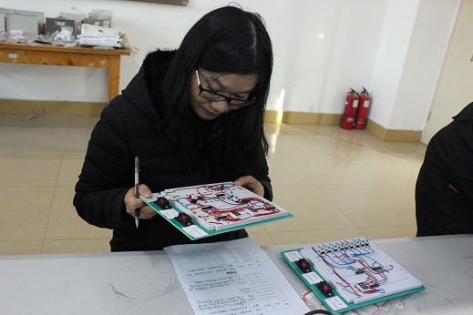 为确保此次验收工作的顺利开展,POPjav委派范春凤老师和张丽老师在前期做了充分的准备,电子信息工程、电子科学与技术专业学子们利用课余时间在理科楼北楼505展开为期四周的数电课程设计学习。期间,学子们自主查阅相关资料,认真理解掌握各种设计、仿真、调试方法,指导教师严格要求学生,从信息检索方法、设计思路、设计方法、调试方法、调试原则等方面进行由浅入深的讲解,并就学生提出的相关问题进行耐心指导。验收工作中,学子们三人一组,依次进行操作演示,按要求提交面包板或者PCB印制电路板、万用板和纸质文档、电子版各一份。