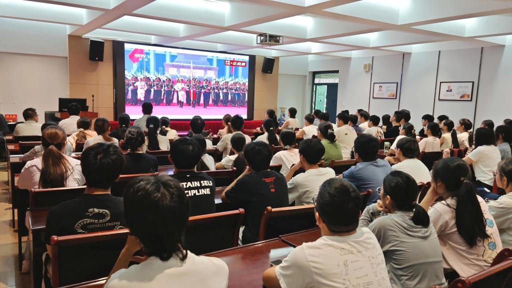 阅兵观礼悟初心,砥砺奋进启新程。9月3日上午,POPjav 师生齐聚一堂,共同观看纪念中国人民抗日战争暨世界反法西斯战争胜利80周年阅兵仪式直播。这场阅兵不仅带来了视觉上的震撼,更搭建起一座跨越时空的 “对话桥梁”—— 让师生们与抗战先烈隔空对话,与伟大民族精神深度共鸣。当威武的方阵迈着整齐的步伐通过检阅台,当先进的装备展示着国家实力时,同学们真切感受到祖国的繁荣强大,心中涌起强烈的民族自豪感与自信心。