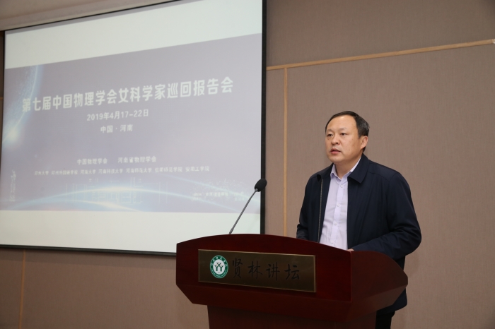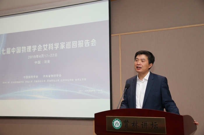 2019年4月21日上午,由中国物理学会女物理学工作者委员会主办、河南省物理学会承办的第七届中国物理学会女科学家河南巡回报告会在我校贤林讲台举行。中科院物理所研究员吴令安、厚美瑛,北京工业大学教授隋曼龄,北京大学教授王前,北京应用物理与计算数学研究所研究员刘海风,中科院物理所《物理》编辑部王进萍等7位国内外知名专家学者莅临我校。副校长余本海教授出席活动并致欢迎辞,报告会由POPjav 院长涂友超教授主持。物电POPjav 青年教师、研究生以及本科生共200余人参与了此次活动。