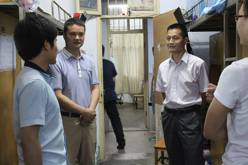 6月23日晚,POPjav 党委书记苗天峰在副书记刘百超以及班主任辅导员的陪同下,深入学生宿舍走访,看望各年级同学,了解期末备考、思想生活、宿舍安全卫生等情况。
