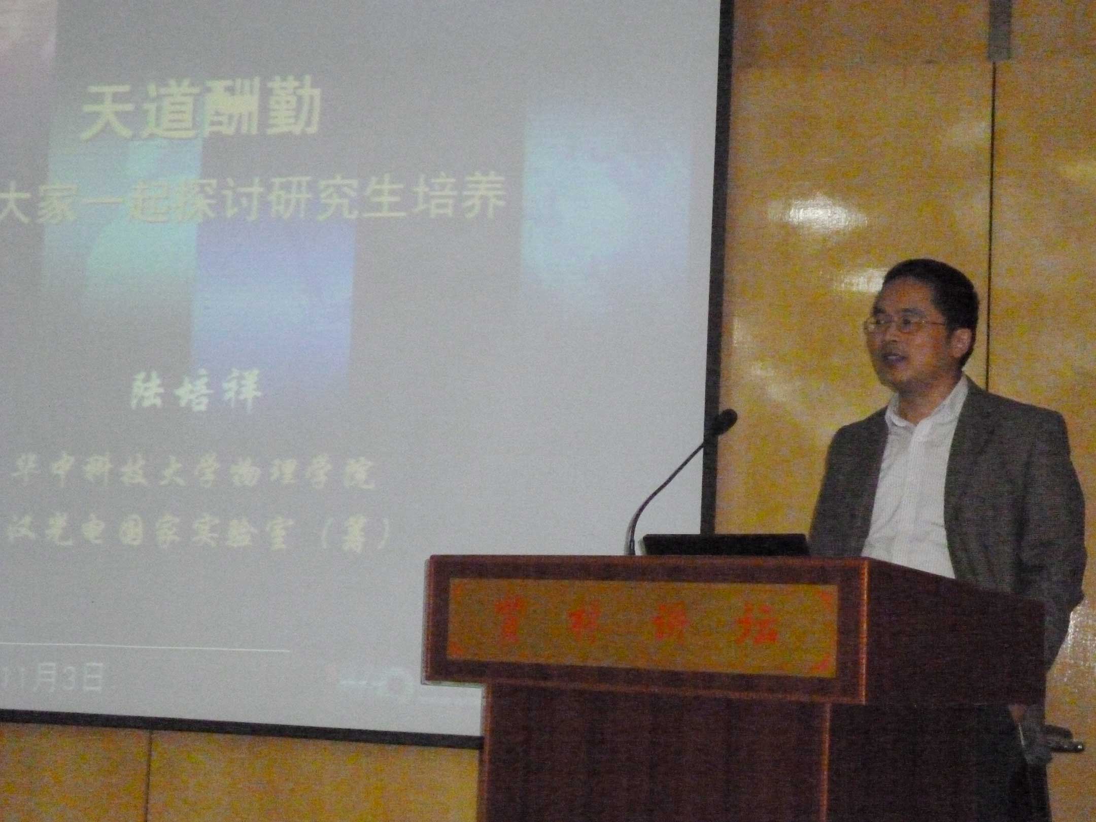 报告以“导师之导”引入,按照“对学生的知识传播”,“对学生的思维训练”,“对学生的人格塑造”三个步骤来阐述研究生导师在学生培养过程中所起的作用。接着报告详细介绍了涉及毕业论文撰写在内研究生培养的几个基本环节:如何选题,如何文献调研,如何选择切入点,如何提升创新能力,如何养成独立工作的能力等等。报告最后,
