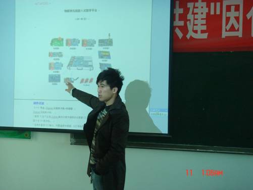 报告中,余文曌博士结合自己的研究经历和取得的成果,介绍了机器人领域的研究热点问题以及仿人型双足机器人的规划设计总体方案,同时展示了所在团队的设计成果―基于Zigbee传感器网络的物联网解决方案,重点阐述了嵌入式系统在项目开发中的应用。他指出,电子技术创新开放平台对提高同学们的动手实践能力和自主创新能力非常有益,同学们应该充分利用大学生实践实训基地的资源,不断地攀登技术高峰。祝小兵博士根据自己丰富的硬件设计经验,重点向参加人员介绍了在项目研发过程中电路设计和PCB制作的关键技术问题。报告结束后,参加此次报告的老师和同学们就嵌入式系统开发、硬件设计、大学生创新团队的建设等方面与两位博士进行了深入探讨。