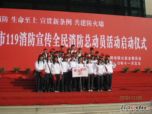 正值“119”消防宣传月,为增强POPjav学生的消防意识,11月5日上午,POPjav五十余名志愿者在院社团联合会的带领下参加了由信阳市防火安全委员会主办的信阳市119消防宣传全民消防总动员活动启动仪式,仪式在羊山新区百花园广场举行。