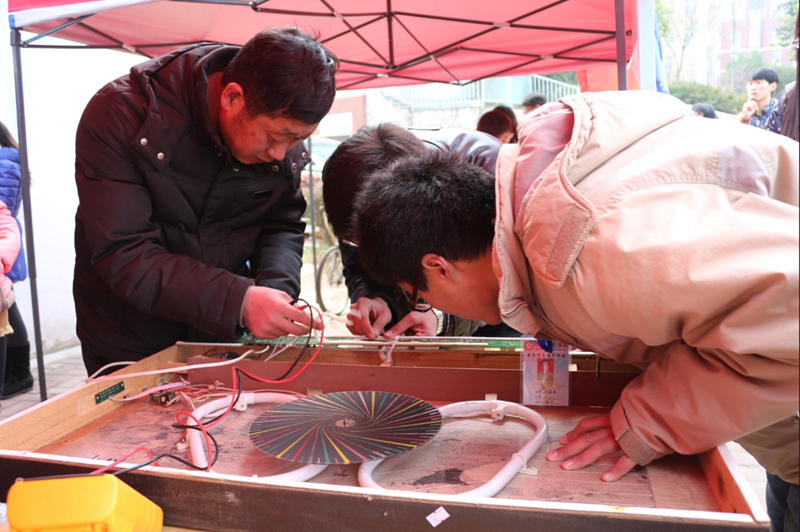 活动伊始,志愿服务队队员对本次义务维修、咨询、服务活动进行广泛的宣传,不一会,居民们纷纷从家中拿来不能正常工作的收音机、电饭锅 、小台灯、 微波炉 、电热器 、电风扇、电脑等家电,让队员们“会诊”,志愿者们认真登记,仔细查找 、分析每一件小家电存在的问题,积极处理检查出的问题;对于大型的家电,队员们在居民的带领下上门维修。队员们都忙的不亦乐乎,他们在各自负责的工作上,挥洒热情、精益求精。在维修的过程当中,POPjav党总支书记刘百超深入活动现场进行指导,要求队员细心、耐心、细致开展好本次活动,让广大群众实实在在地感受到党的群众路线教育实践活动带来的新风尚;教工党员老师罗浩在活动现场耐心地对群众带来的电器进行认真的检修,对队员们在维修过程中遇到的疑难杂症进行仔细分析,并要求队员们认真总结维修过程中存在的问题并从中汲取经验,以便更好的运用到下一次的维修活动中。