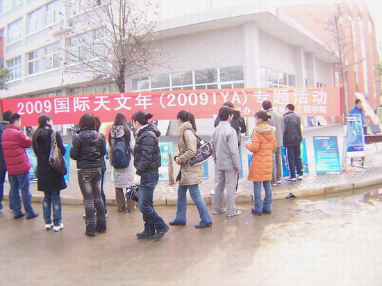 2009年国际天文年主题系列活动在理科楼前拉开帷幕,该院党总支书记雷前友、院长余本海、副院长罗永松等出席开幕式。