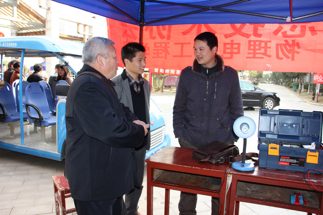 初春的寒意抵挡不住志愿者们的热情,他们早早来到活动地点开始了准备工作:搭工作棚,支工作台忙得不亦乐乎,吸引了众多过往群众驻足询问,不一会儿居民们纷纷拿来了各类需要修理的电器。等待维修的手电筒、台灯、小电吹计算器等电器摆满了服务站点。成员们有条不紊,忙而不乱,认真地将需要维修的家电进行一一登记,耐心询问相关故障,并做好详细记录。维修处的人员仔细地检测电器故障原因,对症下药,认真维修,排除故障。尽力解决好每个问题,保证了维修的效率与质量。同时维修人员也考虑到某些大型电器难以搬运,秉着服务到家的态度不辞劳苦上门维修。当然,在维修过程中,电协成员还对居民们提出的一些疑问进行了耐心解答,并告诉大家一些电器的正常使用和日常保养的知识。