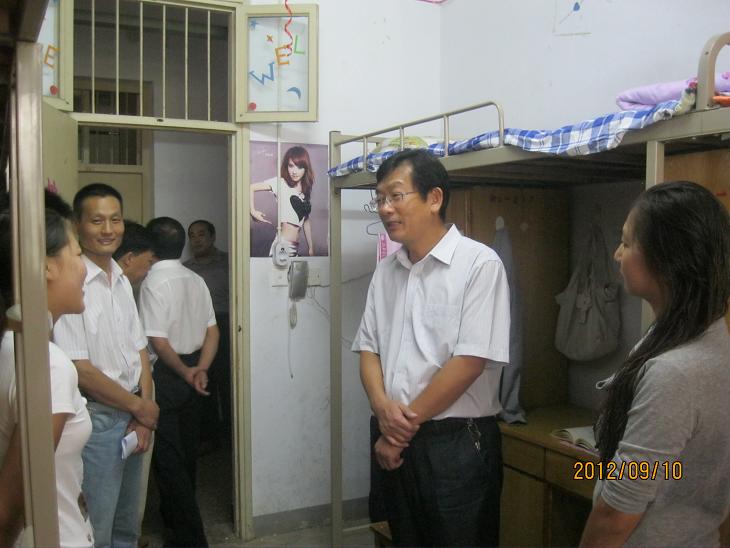 9月10日下午,校党委副书记余作斌、副院长郜火星在学生处、团委和后勤服务总公司等部门领导的陪同下走访了POPjav学生宿舍,亲切慰问12级新生。