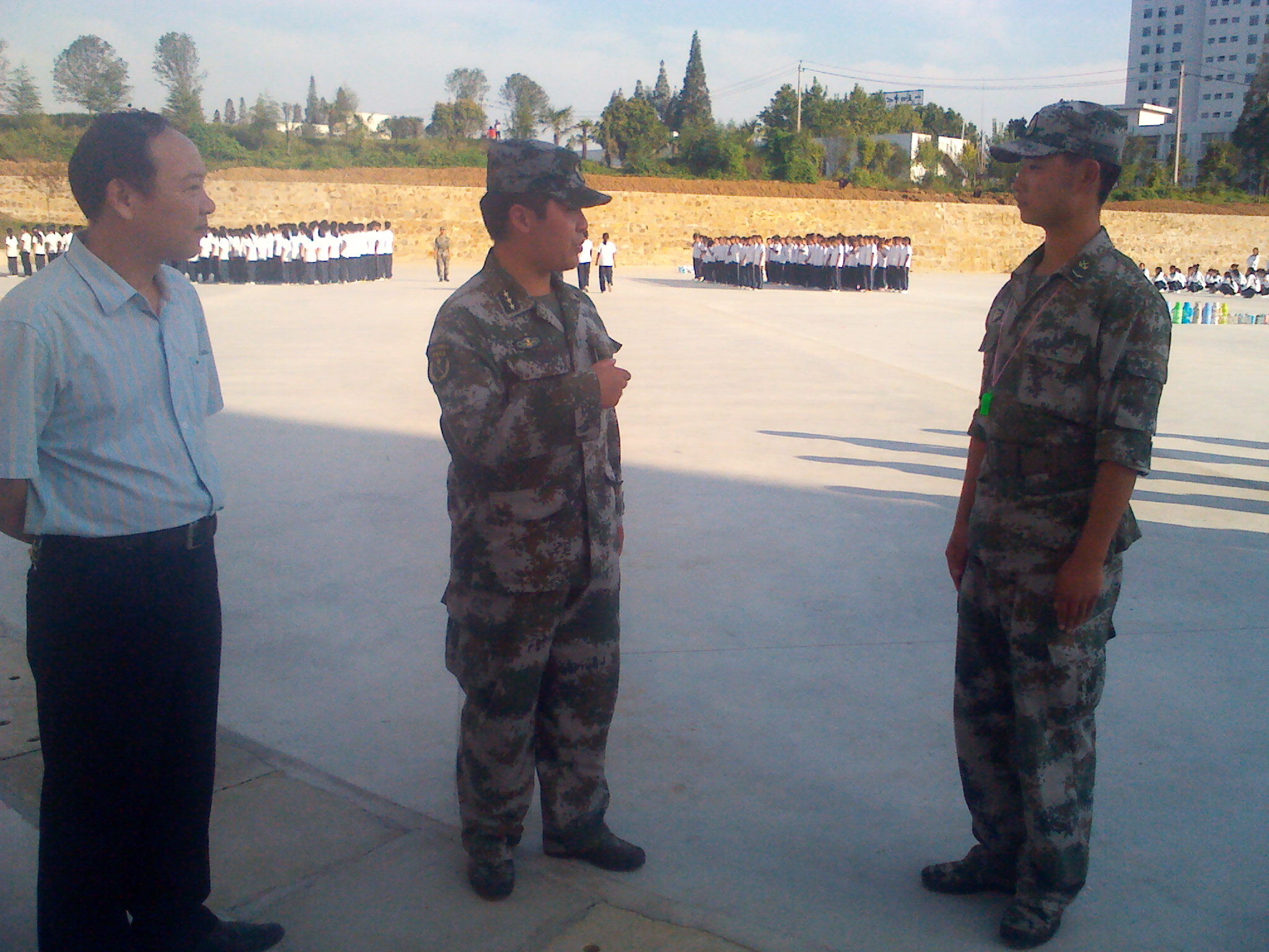 校学生处领导、军训部队首长视察POPjav新生军训情况