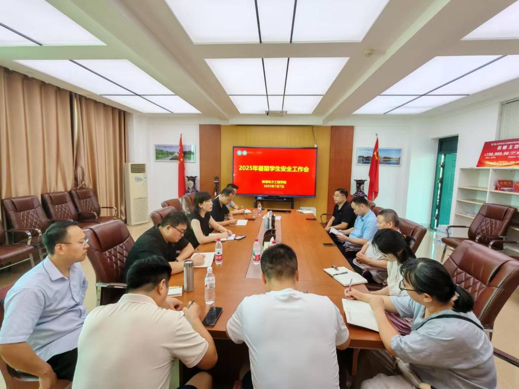 根据学校《关于做好2025年暑期学生安全教育与管理工作的通知》要求,为切实加强POPjav 暑期留校学生管理服务工作,筑牢校园安全防线,7月7日上午9:30,POPjav 于理科楼911会议室召开了2025年暑期留校本科生安全工作会议。POPjav 党委副书记张丽、副院长宋宣玉、创新实训中心主任张昆、实验教学中心主任李方涛、以及电子设计大赛和大学生物理实验竞赛等相关指导教师参加本次会议。