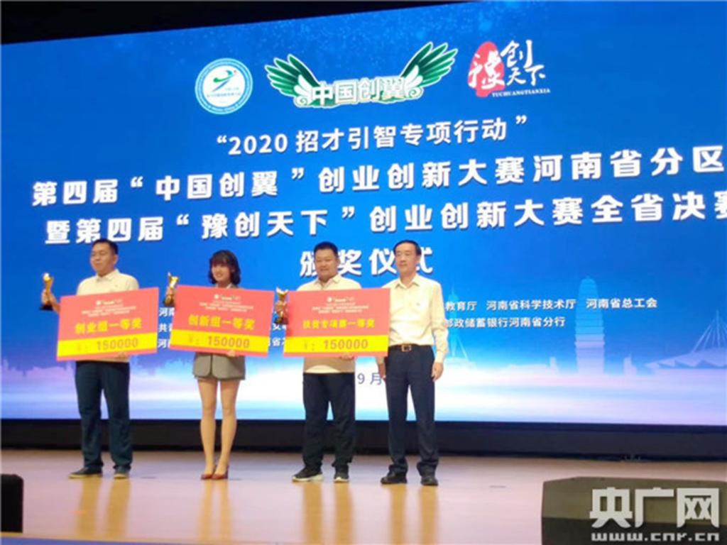 9月11日,第四届“豫创天下”创业创新大赛一、二、三等获奖名单出炉,最高奖金为15万元,扶贫专项入选大奖。河南省副省长戴柏华为一等奖颁奖。