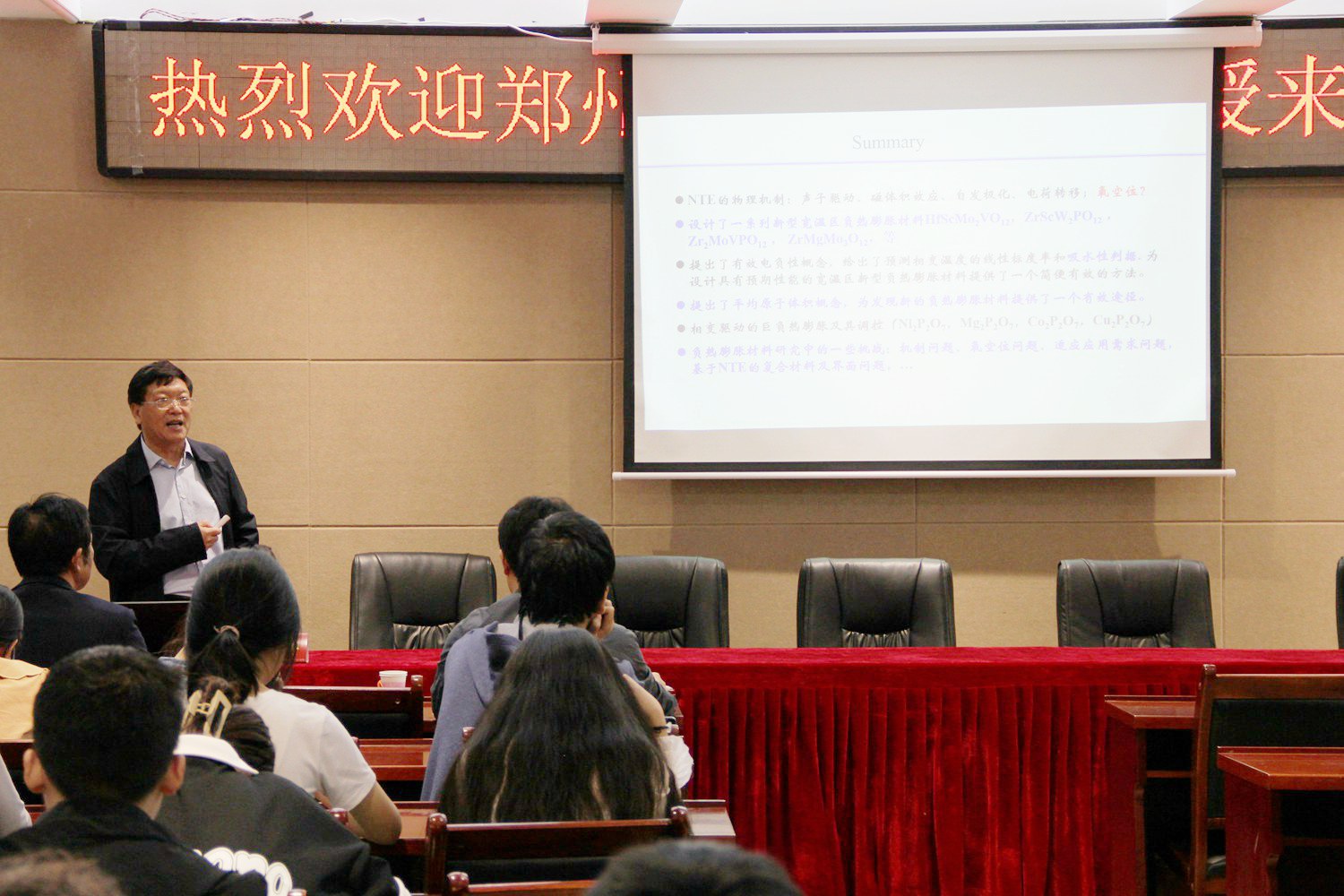 5月12日,应POPjav 邀请,郑州大学梁二军教授来POPjav讲学,在理科楼会议室作了题为“负热膨胀材料研究现状、挑战与机遇”的学术报告。POPjav 教师、研究生及本科生聆听了报告。报告会由副院长龚克主持。
