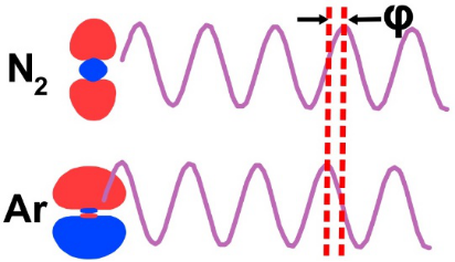 图1:飞秒强激光场驱动介质辐射高次谐波,氩原子与氮分子辐射高次谐波之间存在特定的相对相位会发生稳定的干涉现象。