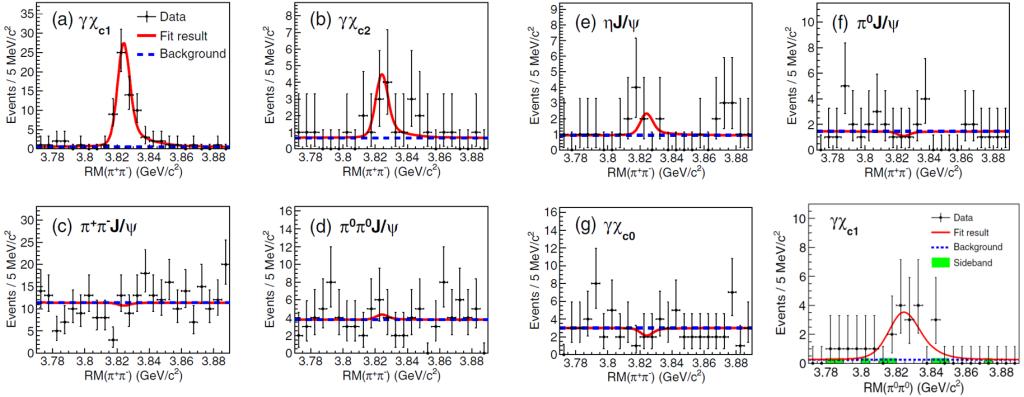 图1:psi_2(3823)的七个衰变模式和过程e+e-->pi0pi0psi_2(3823)的不变质量谱